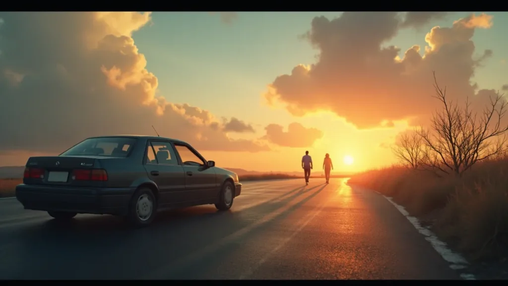 2. Carro quebrado na estrada: alerta para problemas práticos que exigem soluções objetivas, como finanças ou comunicação.